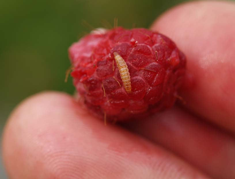 Личинки малинного жука повреждают ягоды, снижая урожай