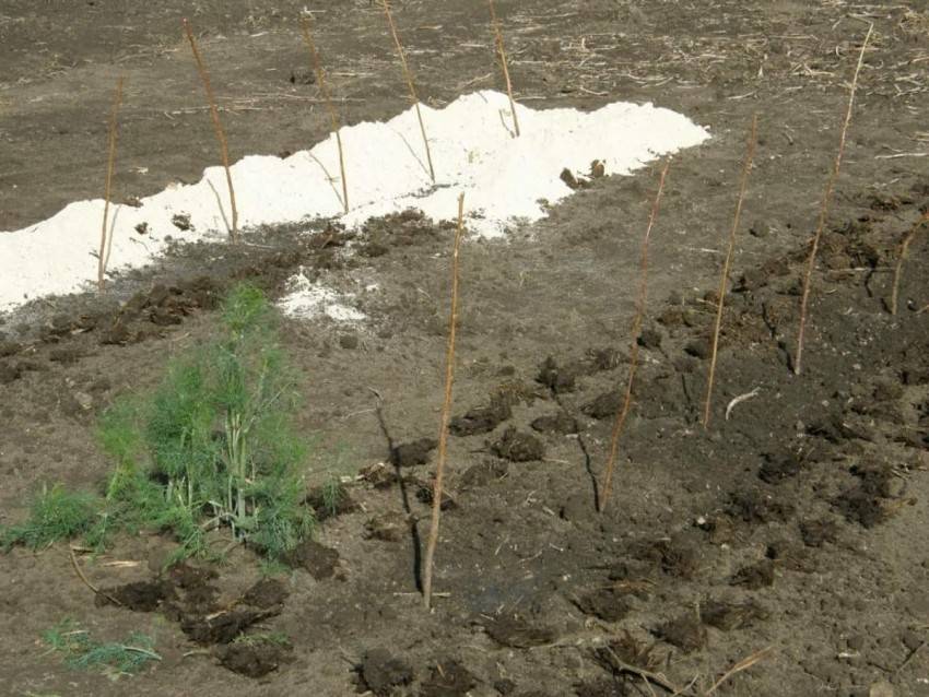 - Полейте и присыпьте образовавшиеся лунки землёй.