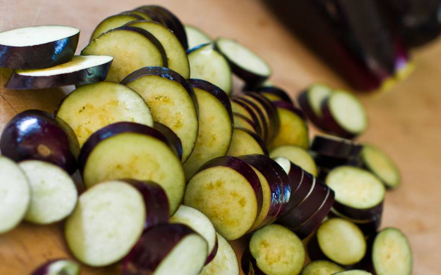 Важно не переварить «синенькие». Их готовность легко проверить при помощи ножа: если лезвие без усилия входит в плод, то достаточно