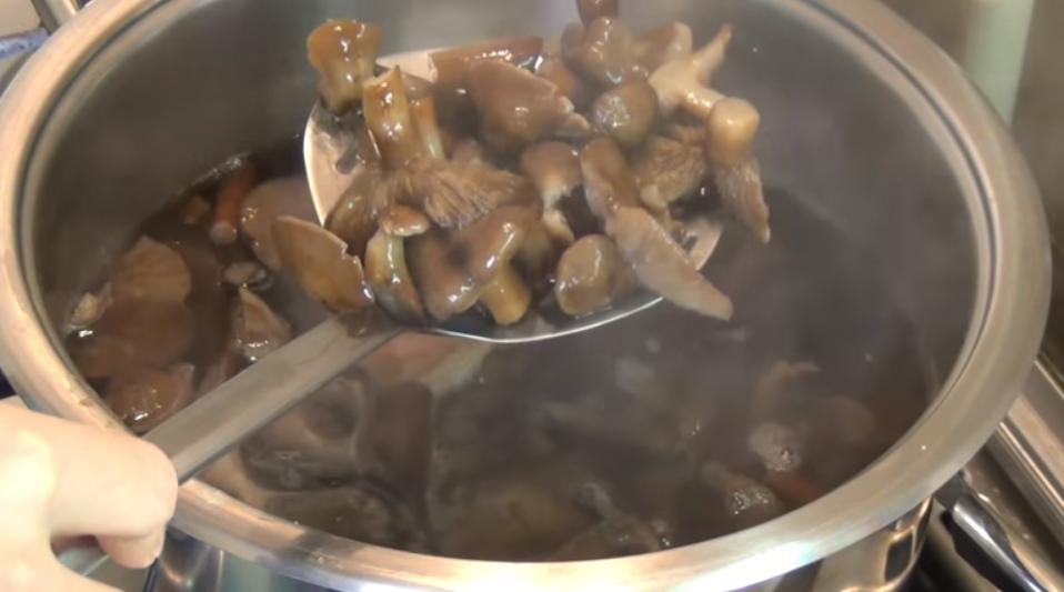 Снова наполните кастрюлю с грибами водой и поставьте вариться. Когда отвар закипит, варите еще 20 минут. Появившуюся пену следует обязательно снимать.