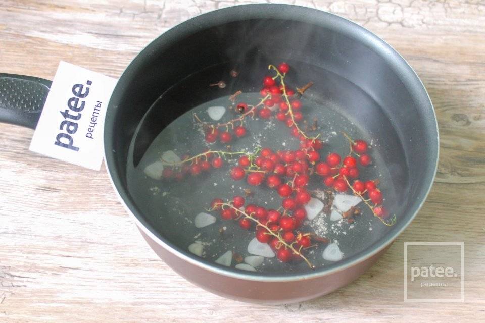 Быстрый маринованный чеснок с красной смородиной.