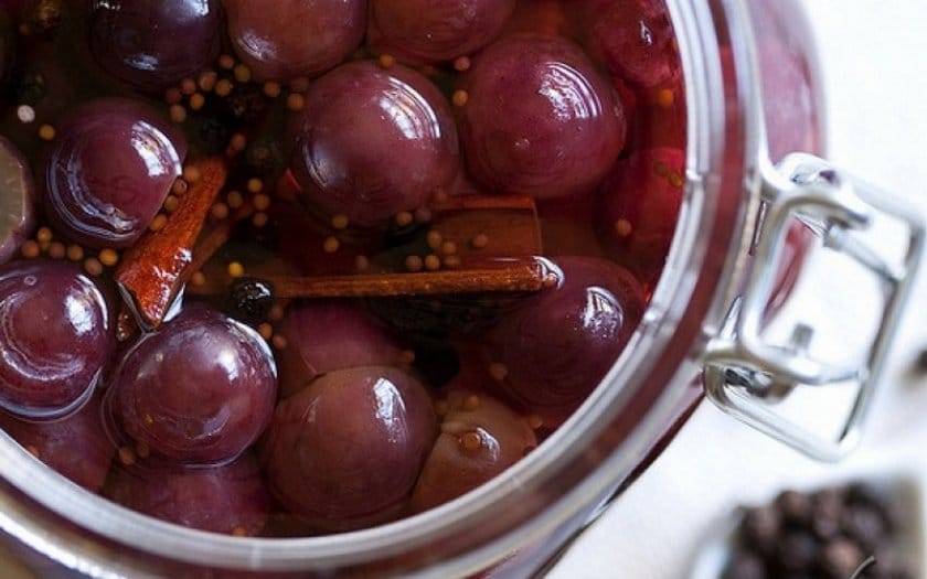 - вкусный маринованный виноград получают из полностью спелых зёрен правильной формы, плотной консистенции.