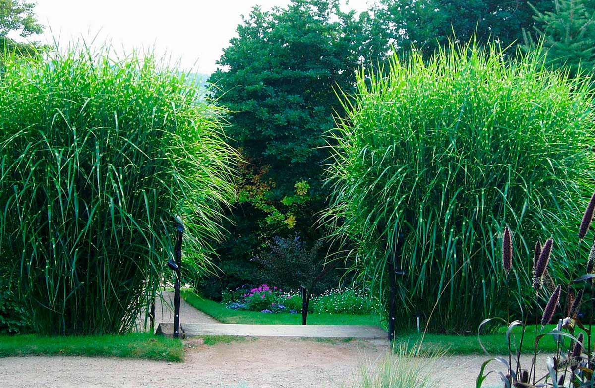 На небольших придомовых территориях наиболее уместно выращивать мискантус китайский. Растут они аккуратными куртинами, не разрастаются вширь, обладают невероятной декоративностью.