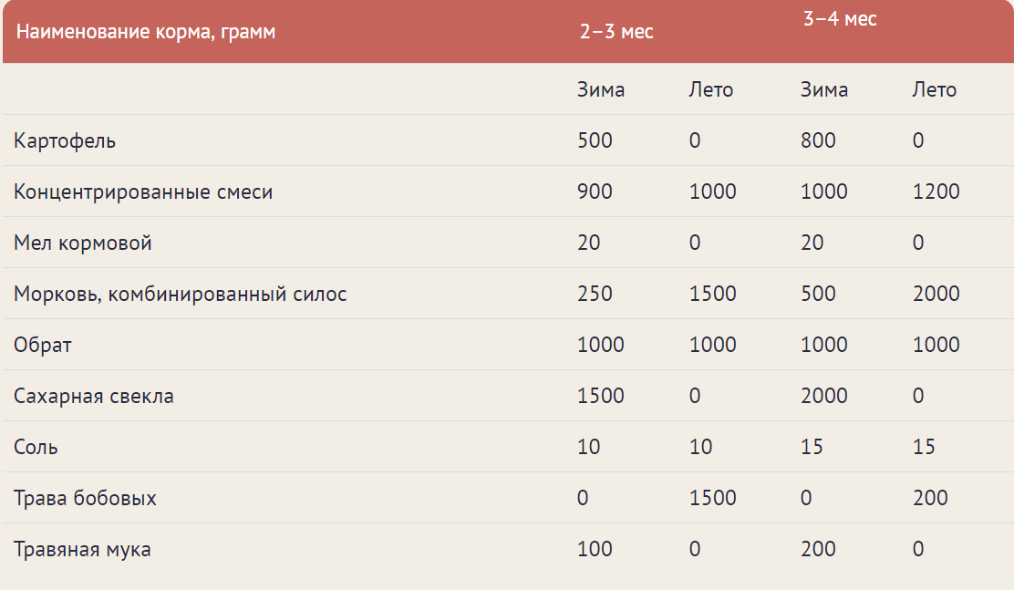 Рацион для отъемышей:
