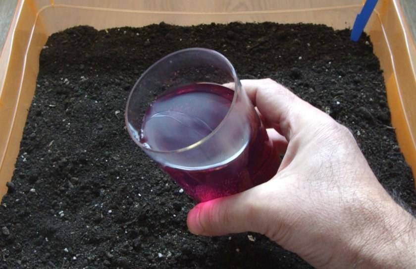 Предпосевная обработка земли обязана выполняться рабочим веществом, сделанным в пропорциях 0,5 г марганцовки и 1 литра теплой воды. Его температура не обязана быть меньше 60 градусов.