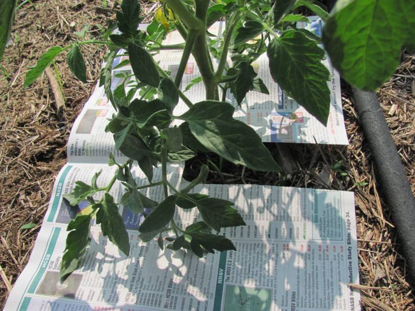 Следующий материал по популярности — это газеты. Газеты отлично соответствуют статусу мульчи по функциям. При их использовании необходимо обложить вокруг куста 2-3 слоя газет и прикрыть их слоем свежей травы, либо земли.