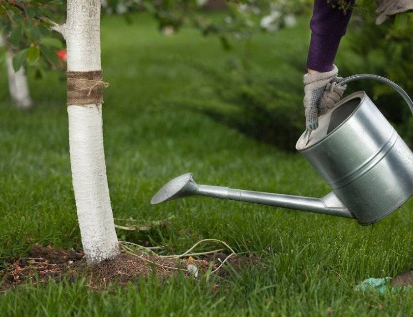 После посадки участок вокруг ствола мульчируют опилками, крошками перегноя или подобным материалом для профилактики иссушения корней. В течение всего теплого периода земля под саженцем должна быть рыхлой и чистой от сорняков. При рыхлении нужно помнить, что корни залегают неглубоко, и не повредить их.