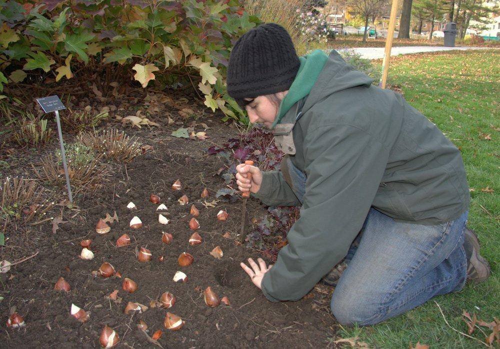 Глубина лунки зависит от типа грунта и размера луковицы: