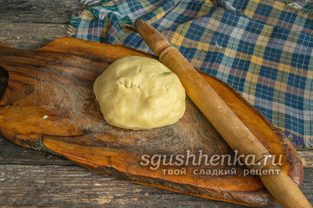 Разделочную доску слегка «припудрить» мукой либо смазать растительным (без запаха!) маслом – на выбор. Отделить от охлажденного шара небольшой кусок, раскатать пластом (максимальная толщина – 4 мм).