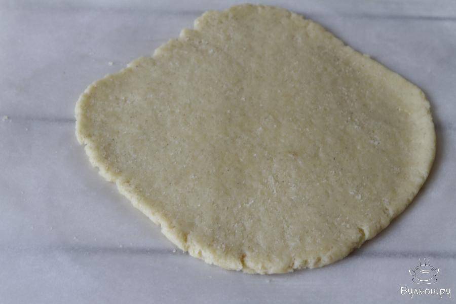 Тесто, завернутое в пищевую пленку, ставится в холодильник. Оно должно провести в холоде 25-45 минут. После этого тесто пригодно для работы. Шар раскатывается в корж толщиной 5-6 мм. Поверхность посыпается сахарным песком, смешанным с ванилькой.