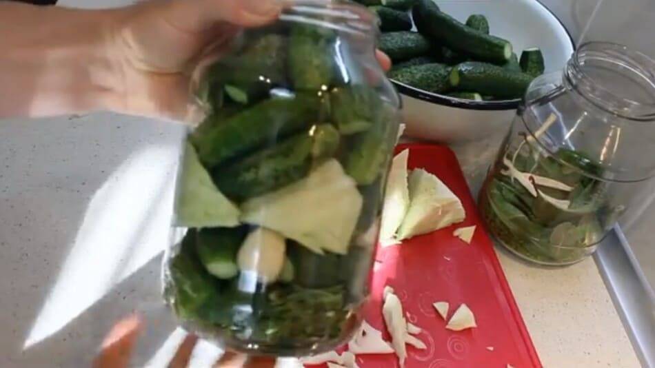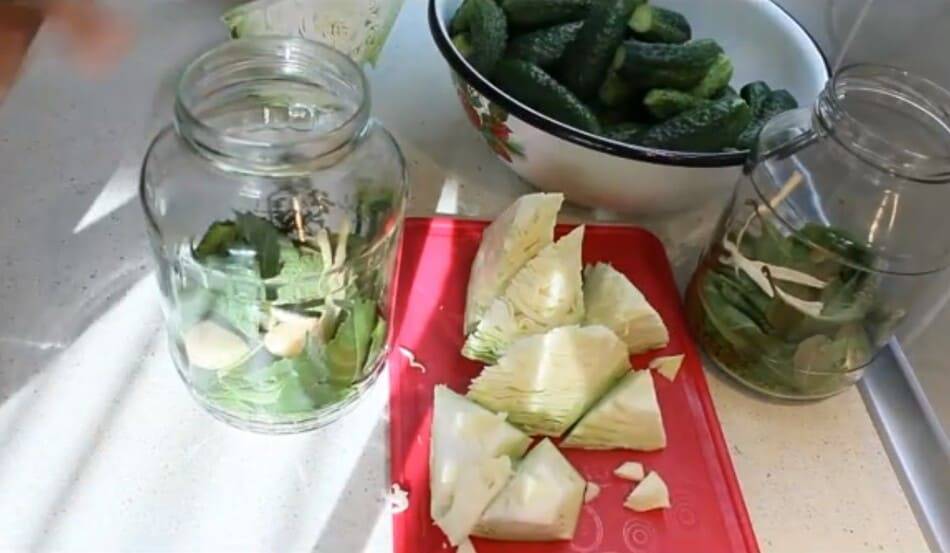 Маринованные огурцы с капустой в рассоле, рецепт под железные крышки