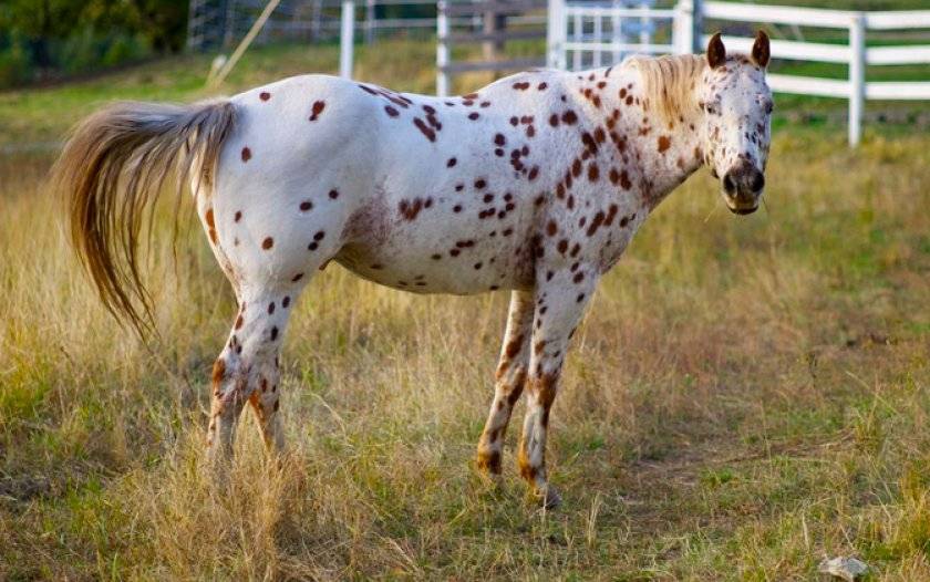 «Фирменная» пятнистость достигается за счет сочетания участков розовой (телесной) и темной пигментированной кожи. Есть еще один нюанс — аппалузы располагают особым, «леопардовым» геном, который как раз отвечает за пигментацию. Чем выше его концентрация, тем больше пятен будет у животного.