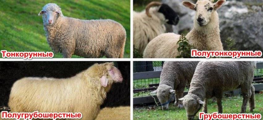 Всех шёрстных овец в овцеводстве в зависимости от качества и толщины получаемого руна делят на 4 вида: