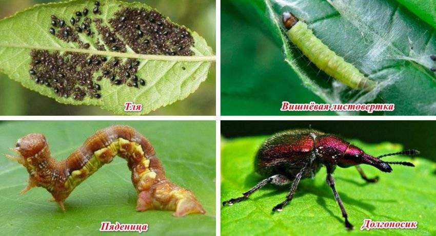 Вредители на вишне селятся крайне редко. Полностью исключить поражение деревца насекомыми помогут химикаты — профилактическая обработка инсектицидами способна уберечь растение. Народные средства также будут нелишними — регулярное опрыскивание настоем золы сделает вишню непривлекательной для вредителей.