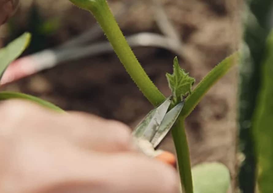 Для того чтобы ограничить рост бесплодных побегов используют прищипывание. Большое количество плодородных лиан растут из боковых побегов растения. Поэтому, если мужской стебель прищипнуть, то на нем станут образовываться женские побеги, которые дадут дополнительный урожай