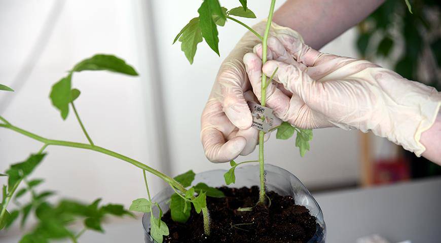 При таком способе ростки помидоров ножницами срезают на уровне земли и высаживают в стаканчики с заготовленным покупным нейтральным грунтом. Заглубление делают примерно до уровня семядольных листьев. Затем каждое растение поливают, накрывают полиэтиленовым пакетиком и оставляют в прохладном темном помещении на 3-5 дней. После этого срока стаканчики переносят поближе к свету, пакеты удаляют.