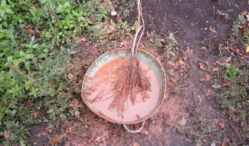 За 12 часов до высадки корни растения погружают в воду, чтобы они хорошо напитались и не страдали от нехватки влаги после посадки. Для лучшего сцепления с почвой корни рекомендуют обмакнуть в жидкую смесь (по густоте должна соответствовать сметане) коровяка и плодородной почвы.