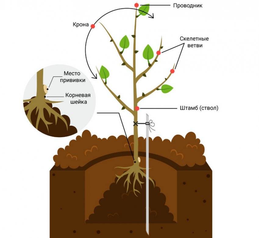 - С двухлетнего возраста саженец прикрепляют к опоре, чтобы дерево имело ровный ствол и приносило высокие урожаи.