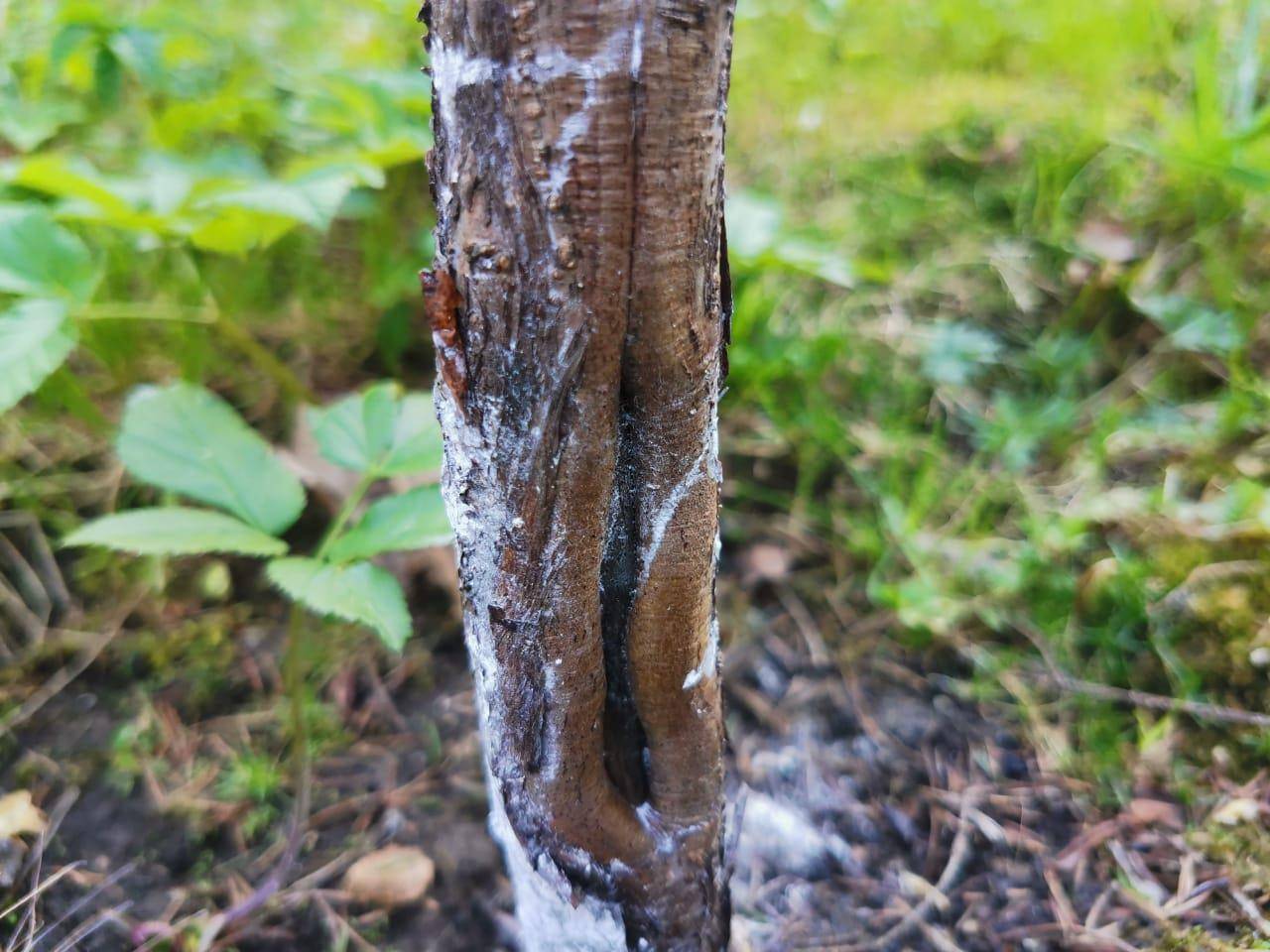 - Побелка стволов вредит коре, но даже если вы побелили ствол именно на тот период, когда это необходимо, то постарайтесь ее смыть после таяния снега. Под краской вы не заметите места с омертвевшей корой, а когда обнаружите их, может оказаться, что дерево уже не восстановить.