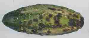 Листья растения, молодые огурчики покрываются черными пятнами с серым налетом, плоды растут искривленными. Необходимо опрыскать препаратом, содержащим бензимидазол.
