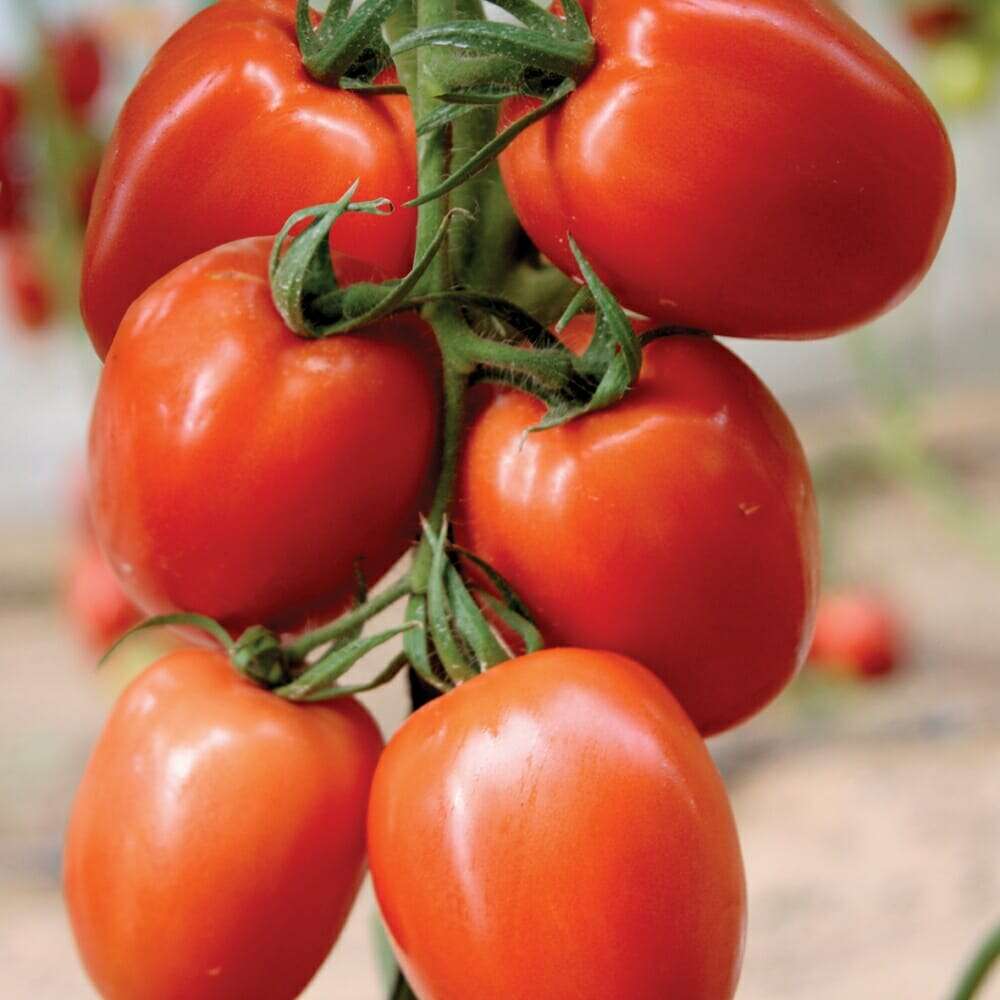 Из семян вырастает индетерминантный гибрид с кистями из 8-9 томатов. Их отличает удлиненно-овальная форма, средний размер (80-120 г) и насыщенно красный цвет. Вкусовые качества у плодов отличные. Но это не единственные достоинства сорта: он с легкостью терпит температурные перепады, болезнеустойчив.