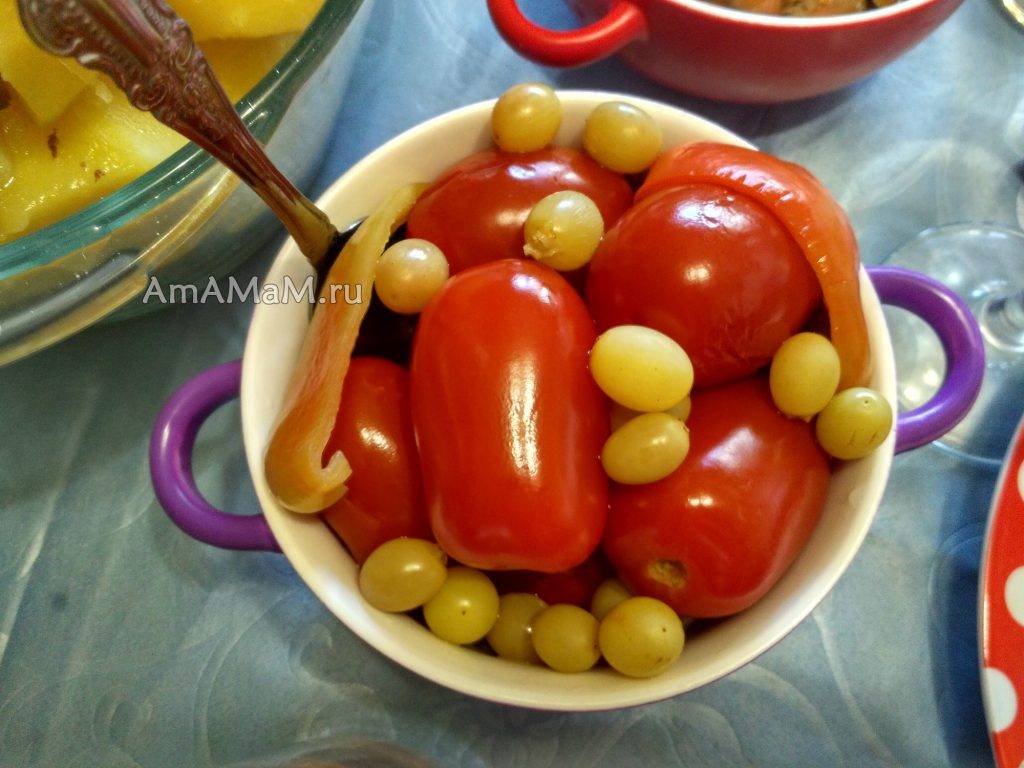 Помидоры с виноградом и сладким перцем на праздничном столе