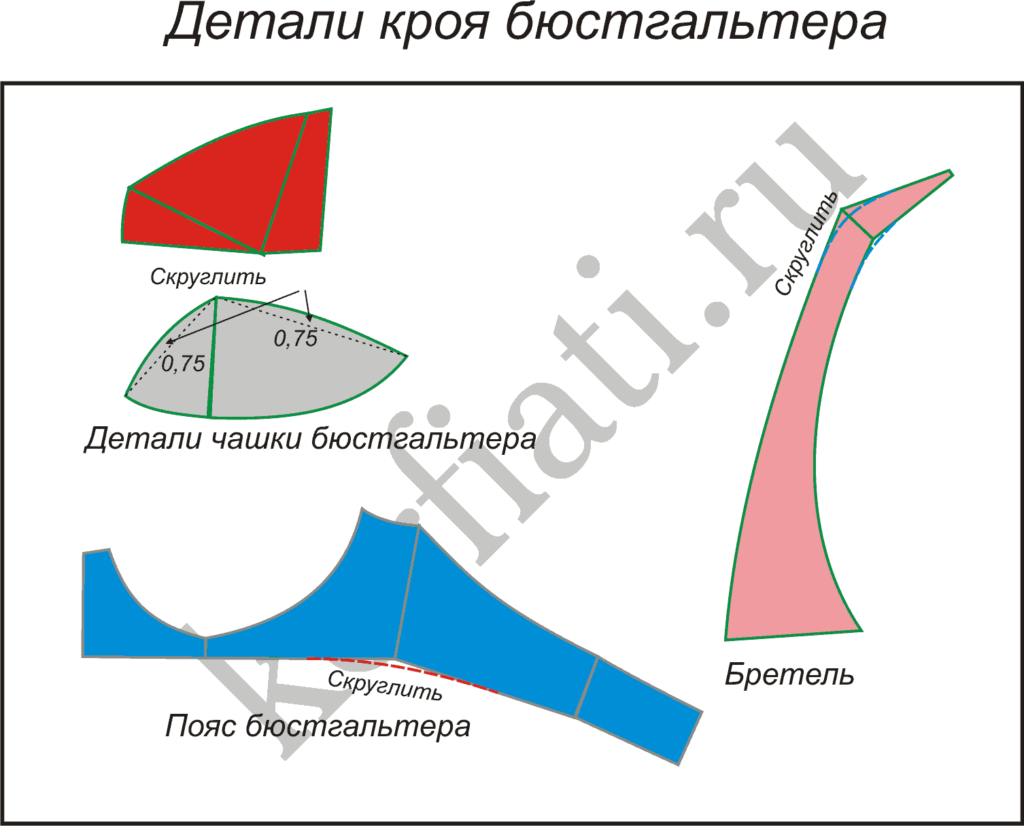 Рис. 2. Выкройка бюстгальтера: детали кроя