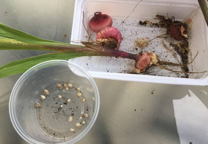 Как показывает практика, дачники не занимаются вышеописанными агротехническими мероприятиями из-за длительности и трудоёмкости процесса. Большинство цветоводов предпочитают разводить шпажники посредством отделения от материнского материала луковичных деток. Такой способ позволяет избежать перекрёстного опыления, даже при наличии рядом растущих гладиолусов разных сортов.