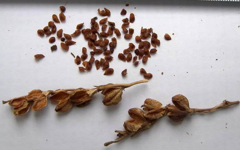 Зёрна, полученные из семенных коробочек, представляют собой тонкие, небольшие пластинки, длиной не более 0,2 см, которые имеют зародыш в центре. Как правило, одна коробочка содержит от 180 до 200 семян. Хранят материал в сухом, проветриваемом, тёплом помещении. При слишком высоких или низких температурных показателях, а также повышенной влажности семена быстро теряют всхожесть.