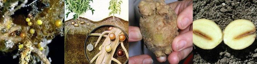 Рисунок 2. Золотистая нематода и признаки поражения вредителем на клубнях