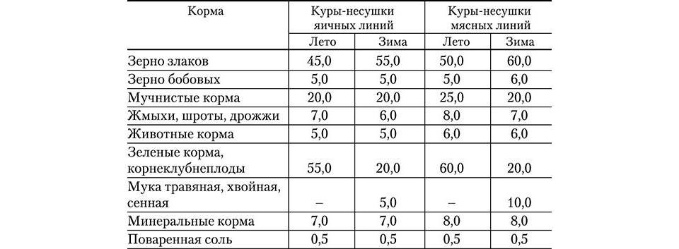 Состав зерносмеси для кур-несушек в процентах: