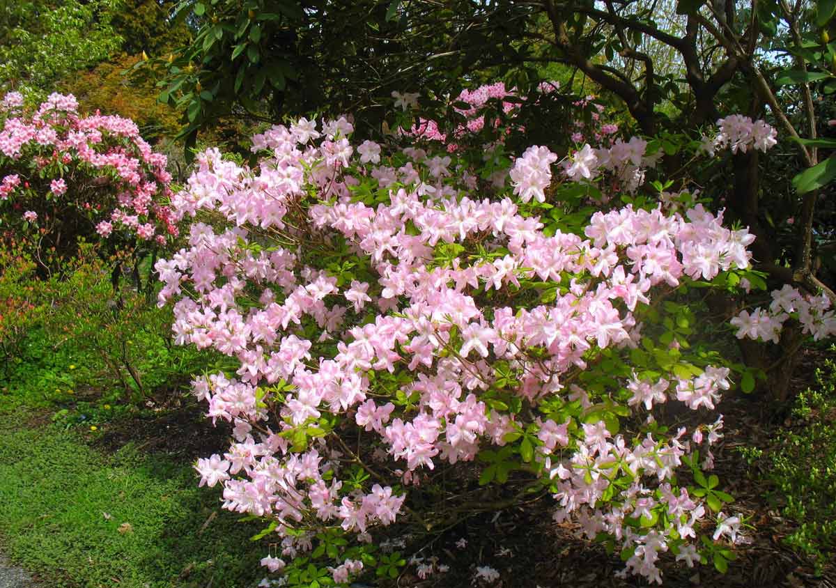 Любимые соседи рододендронов – это папоротники, хосты, другие цветущие кустарники. Хороши растения в японских садиках среди камней, в тени хвойников.