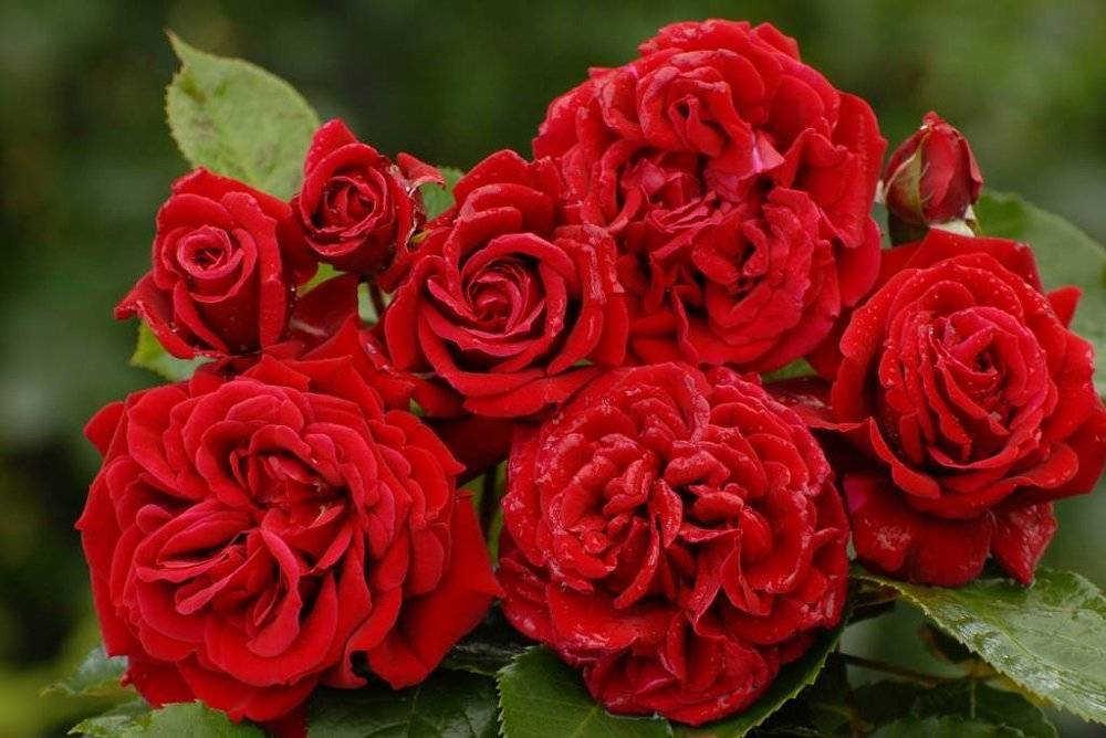 Роза «Сантана» хорошо переносит осадки. Даже после сильного дождя лепестки с цветов не осыпаются. Листья расправляются, становятся более пышными и яркими.