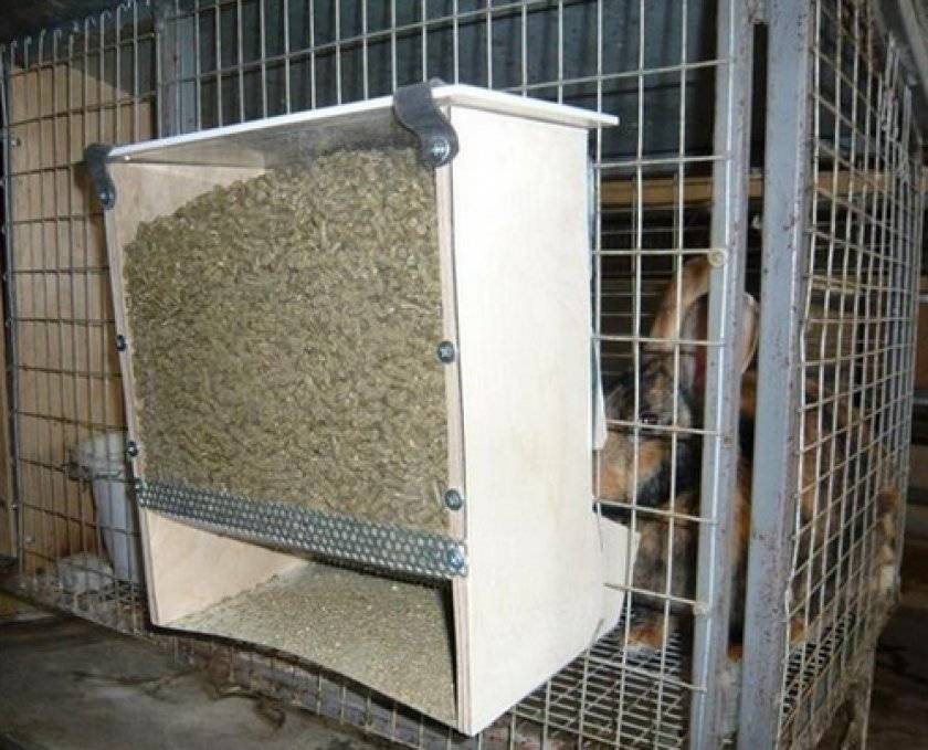 Конечно, можно положить сено просто на пол, но тогда кроли его затопчут и есть не будут, что нецелесообразно в финансовом плане. А уборки в клетках прибавится.