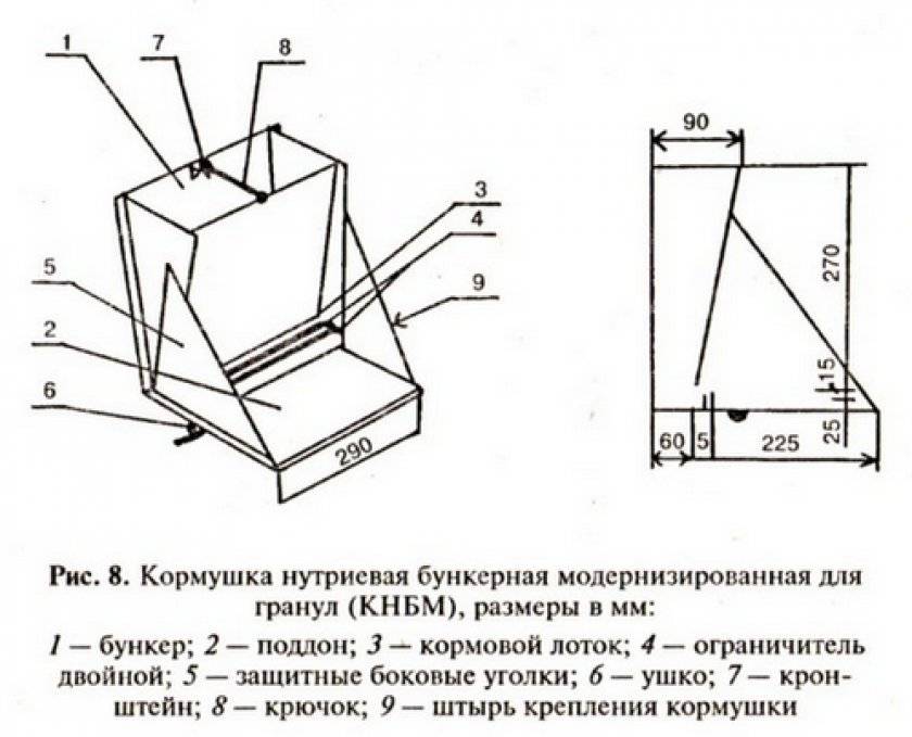 Для того чтобы спроектировать чертеж бункерных яслей, необходимо определиться с её размерами, учитывая не только ширину и высоту, но и размер боковых частей. Можно проектировать чертеж самостоятельно или же найти в Интернете и подогнать размеры под вашу клетку.