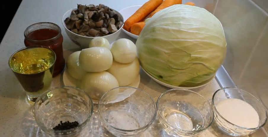 Ингредиенты для приготовления Тушеной русской капусты с грибами:
