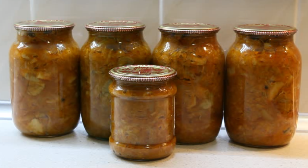 По такому же рецепту можно приготовить и солянка на зиму без грибов с капустой, все ингредиенты остаются теми же, как и технология приготовления.