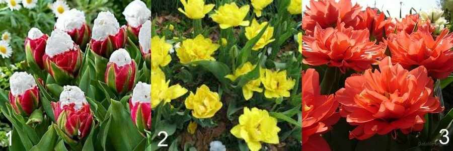 Рисунок 2. Типы махровых ранних цветов: 1 — Айс Крим, 2 — Монте Карло, 3 — Махровый красный