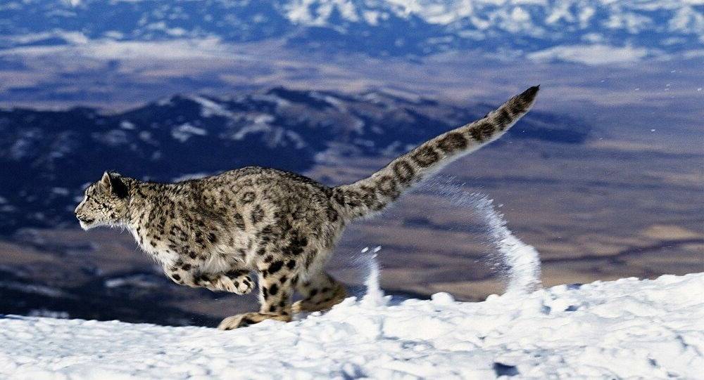 Снежный барс на охоте может развивать скорость до 60 км\ч, но лишь на короткие дистанции.