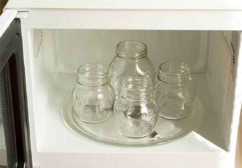 - Банки расставляются так, чтобы они не соприкасались друг с другом. Процесс проводится при максимальной мощности в течение 6 мин. Для мощной печи время можно сократить до 2 мин.