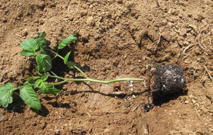 Совет! Переросшую рассаду высаживают в лежачем положении.
