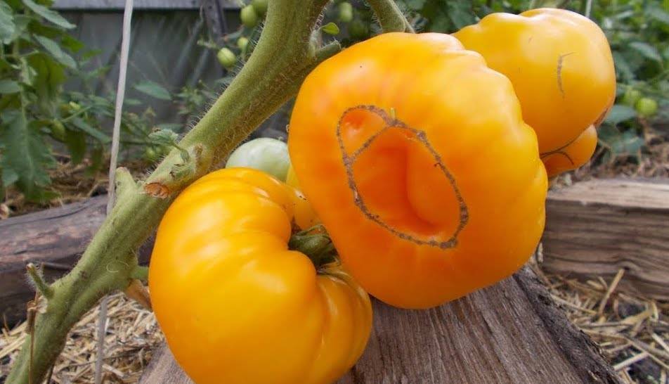 Для растения характерны плоскоокруглые плоды желтого цвета. Их кладут в салаты и применяют для приготовления сока. Масса одного плода достигает 500 граммов.