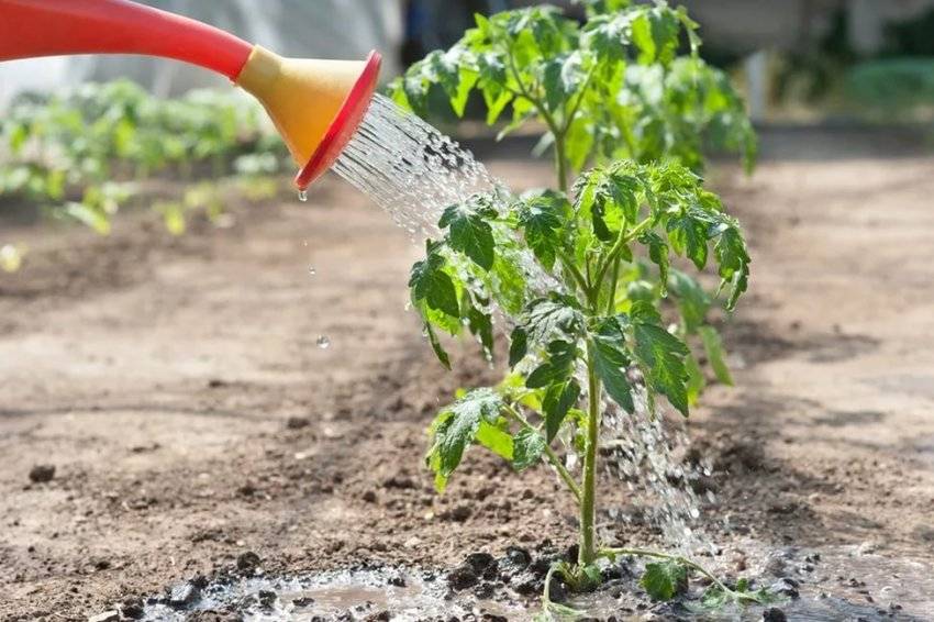 Важно! Ограничением влаги можно регулировать скорость созревания томатов. При нарушении водного баланса растение стремиться воспроизвести семена, направляя все ресурсы на питание завязавшихся плодов