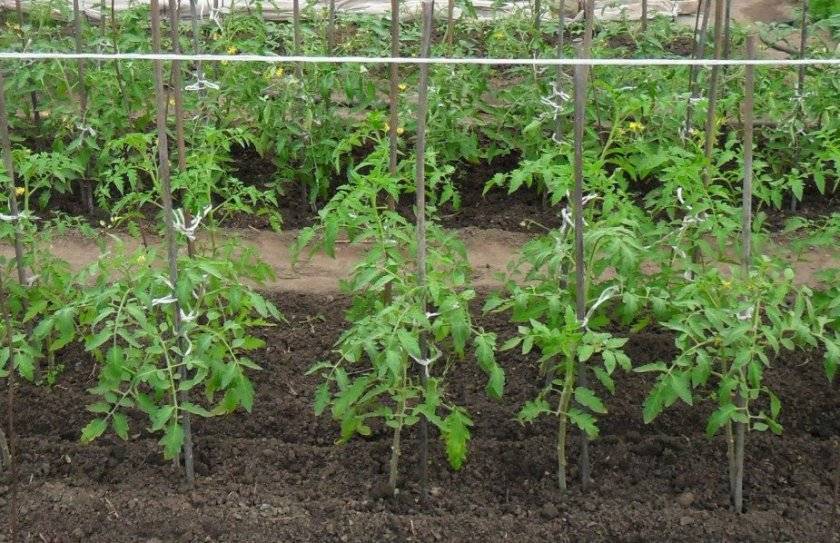 Пересаженные всходы следует сразу привязать к колышкам.