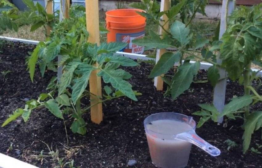 Также каждые 2 недели помидоры подкармливают магнием, а в период цветения готовят подкормку из бора: в 1 литре воды растворяют 1 г борной кислоты. Полученным раствором опрыскивают помидоры из пульверизатора вечером.