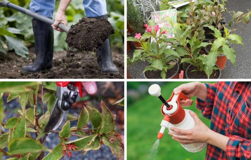 Чтобы вейгела прижилась должным образом и своевременно зацвела, требуется особый уход: