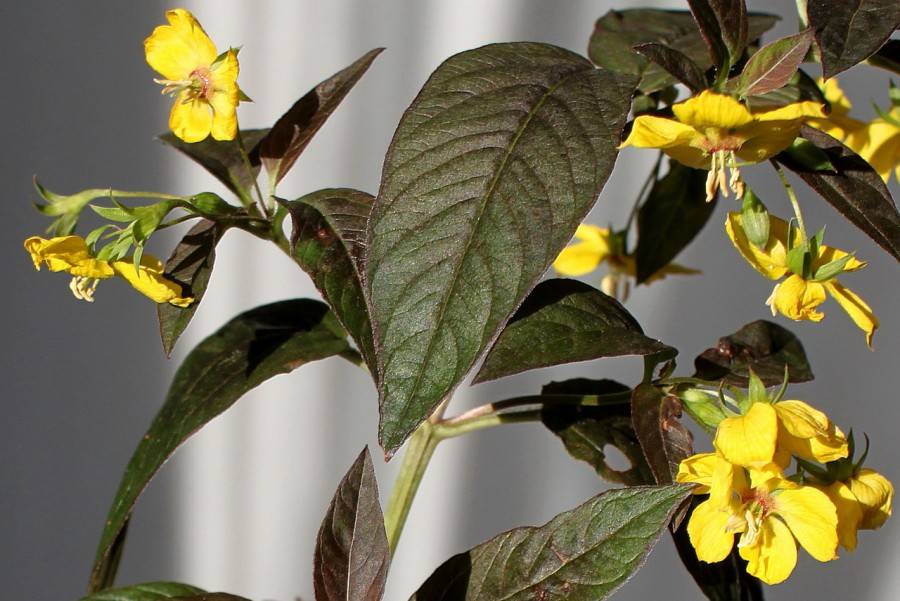 - Вербейник пурпурный – еще один оригинальный вид, который отличается винно-красным цветом листвы. Цветы лимонно-желтые, размещенные в пазухах листьев в верхней части побега, цветут поздно, в августе-сентябре. Это низкорослая (всего 45 см в высоту) разновидность, предпочитающая хорошо освещенные, солнечные участки.