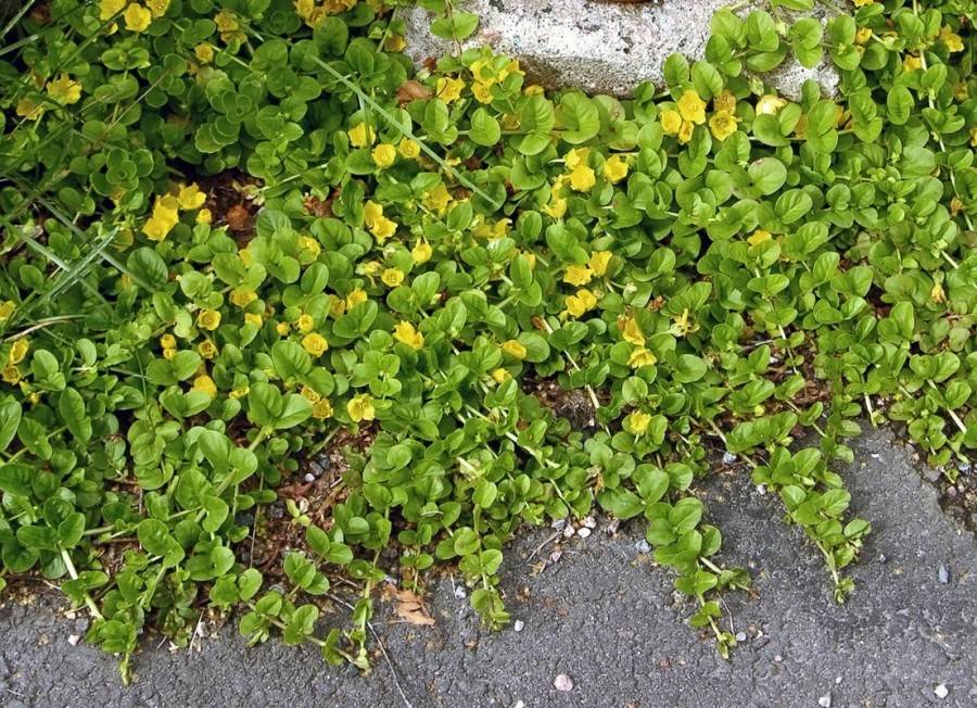 Эффектное почвопокровное растение с ползучими, стелющимися стеблями, в высоту не превышает 10 см. При контакте с грунтом в листовых узлах появляются корни. Листья ярко — зеленые, округлые, диаметром до 2 см., напоминают монету, за что растение и получило такое название. Цветки яркие лимонного — желтые или золотистые, с 5 тонкими продолговатыми лепестками, диаметром до 2 см. Выведены сорта с золотисто — желтыми листьями. Данный вид шикарно смотрится не только как почвопокровное, но и как ампельное растение.