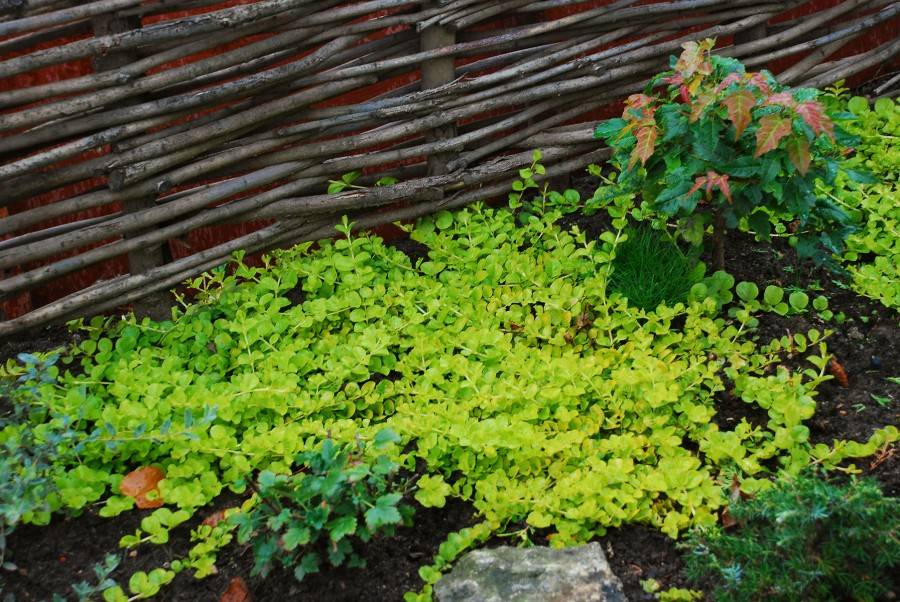 - Goldilocks. Золотой оттенок листьев и цветов проявляется при выращивании на солнечных участках. Бутоны немного больше листьев. Сорт выдерживает вытаптывание и небольшие засухи, хорошо переносит затопления. Если Голдилокс высажен на хорошо увлажненный, рыхлый и плодородный грунт, то в течение 2 лет сформирует плотную куртину высотой до 15 и шириной около 30 см. Он способен полностью подавить и выселить соседей.