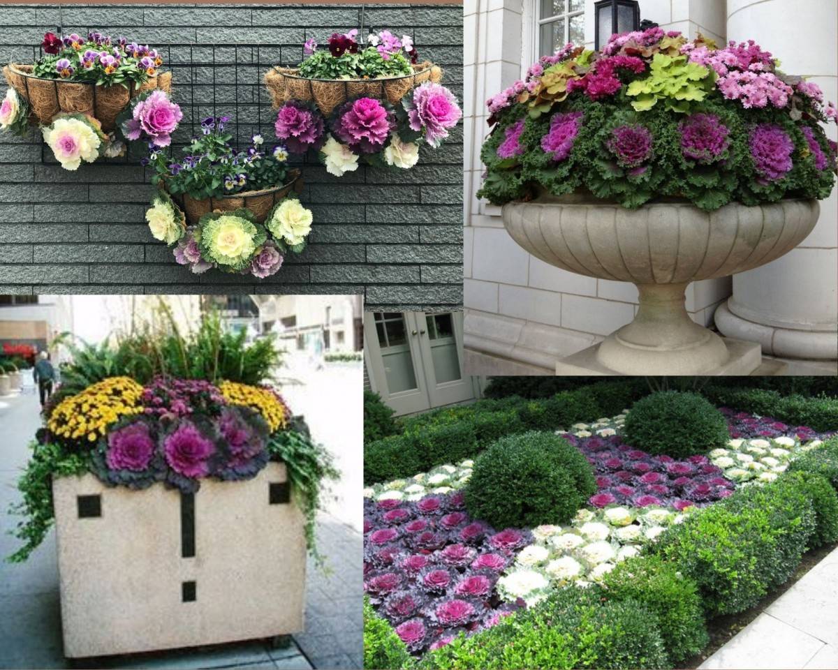 Интересно смотрится декоративная капуста в емкостях (кадки, вазоны, контейнеры). Подойдут емкости из любых материалов, в том числе керамические, но лучше всего смотрятся монументальные кадки и вазоны: например, деревянные. При наступлении сильных холодов растения можно занести в помещения, что значительно продлит срок их жизни. Многие сорта сохраняют декоративность до декабря. Конечно, для дома лучше всего подходят миниатюрные сорта, вроде сортов из серии Крейн.
